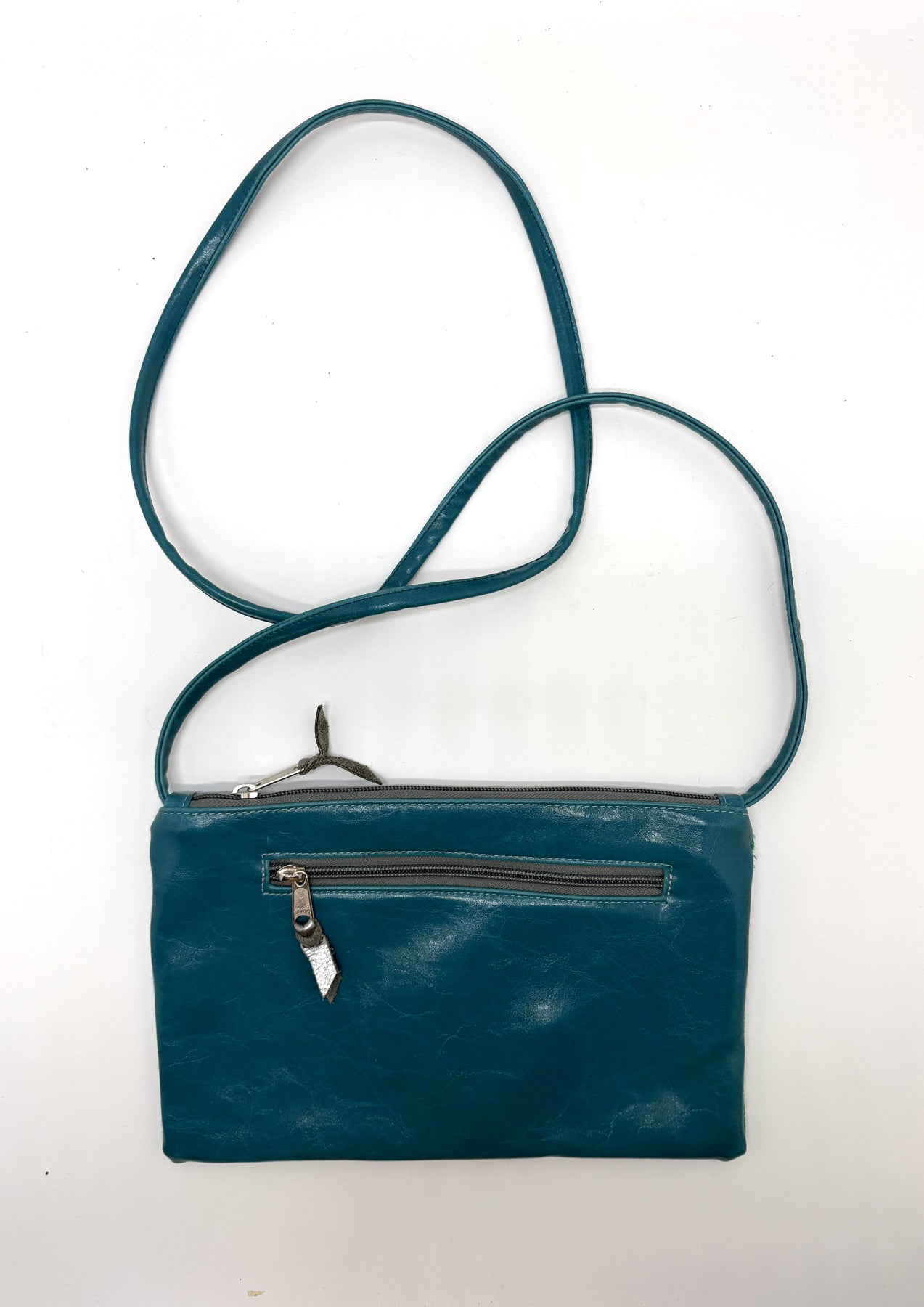 Teal leather crossbody bag on a white background#color_sky-arches-teal-green